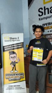 A: Siapapun yang ingin belajar bahasa inggris langsung saja ke Share-E Insya Allah dijamin bisa asalkan serius dan tekun dalam belajar. Suasananya seru, tutor nya tidak kaku dan tentunya menjaga batasan dengan lawan jenis