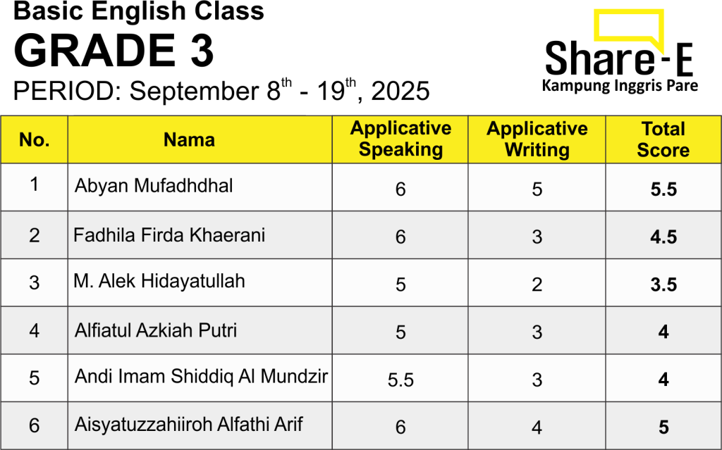 Faaza Athoillah Bilhaq Ahmad: Warga Lokal Juga Belajar Bahasa Inggris di Kampung Inggris Pare Loh Kalau kamu belajar Bahasa Inggris, materi apa sih yang menurut kamu sulit? Kali ini, kantor Share-E Kampung Inggris Pare kedatangan Mr. Bilhaq nih yang rumahnya nggak jauh dari Share-E Kampung Inggris Pare. Yuk simak kesan belajar Mr. Bilhaq waktu …