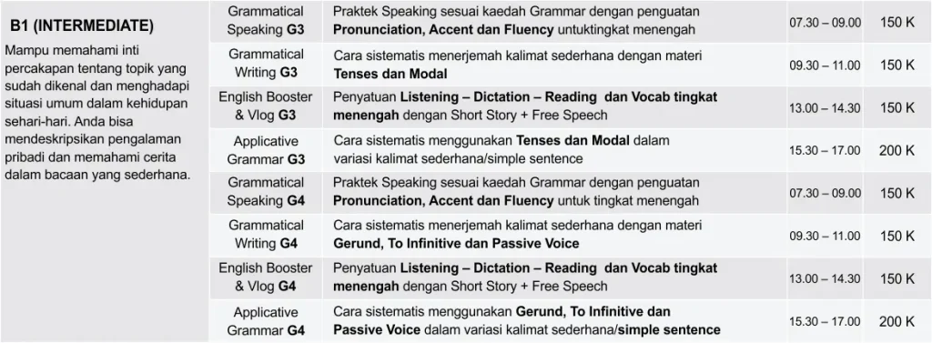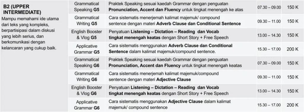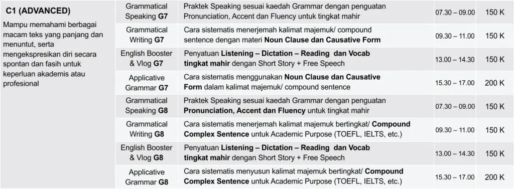 Kelas privat 1-on-1 dengan jadwal fleksibel dan materi sesuai kebutuhan.